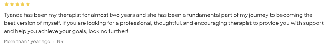 Tyanda is a licensed psychotherapist, who has experience in treating children, adults, adolescents, and families from various backgrounds. She specializes in treating anxiety, mood disorders, stress and anger management, relationship issues, life transitions, self-esteem concerns, trauma, and substance abuse issues. Tyanda earned a Master’s Degree in Social Work from Adelphi University, and a Forensic Social Work certification from Long Island University Post. She has experience working within the hospital sector, clinical settings, correctional facilities, and the criminal justice system. Tyanda prides herself on being a patient, empathetic, kind, culturally affirming, and supportive psychotherapist. She aims to assist her clients’ journey towards healing and growing holistically. She further seeks to provide a warm, compassionate, direct, and person-centered approach to assist her clients in overcoming their daily challenges by harnessing and empowering their strengths and utilizing acceptance. Her treatment modalities include motivational interviewing, solution-focused, trauma-informed, psychodynamic and strength-based approaches. She also employs mindfulness and cognitive behavioral techniques.